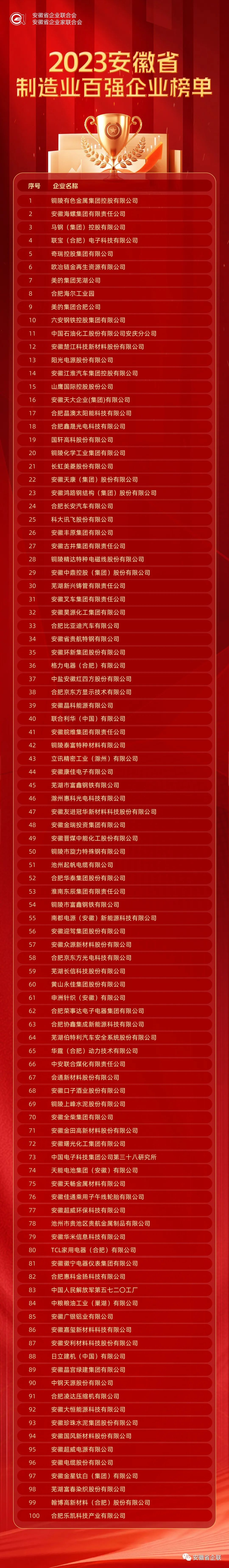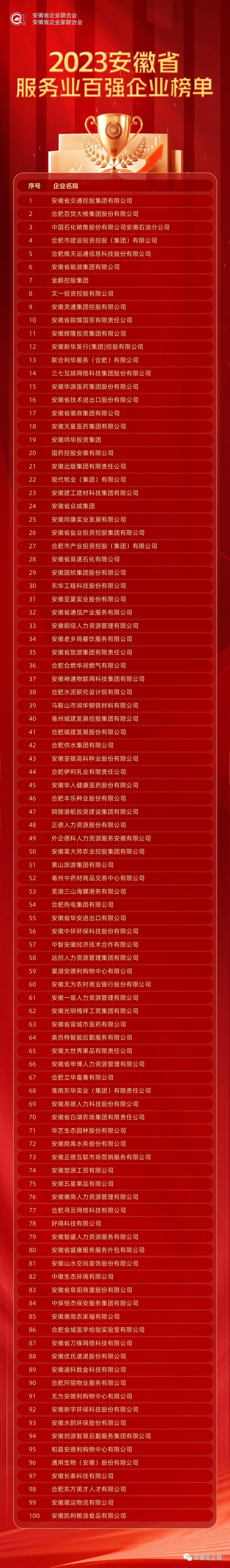 附件:2023安徽省百強企業、制造業、服務業百強企業名單
