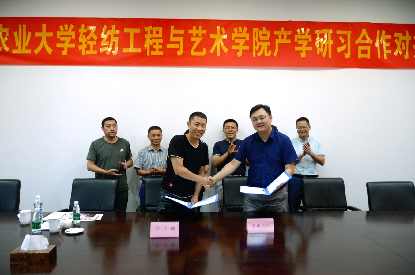最后,在與會人員的共同見證下,陸院長、杜院長與卞總對“安徽農業大學輕紡工程與藝術學院校外實習基地”進行了簽約和揭牌,并實地參觀了MatchU尚、百年益新面粉大樓及大礱坊歷史文化長廊,本次產學研習對接會議圓滿結束。