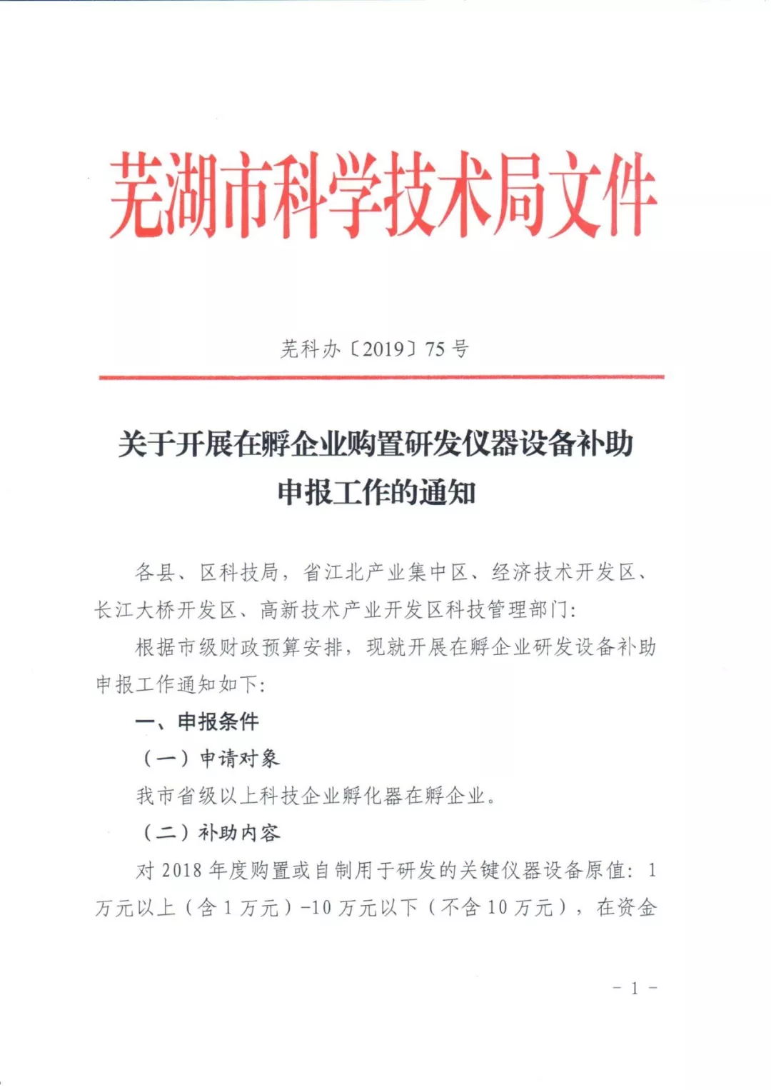 關(guān)于開展在孵企業(yè)購置研發(fā)儀器設(shè)備補助申報工作的通知