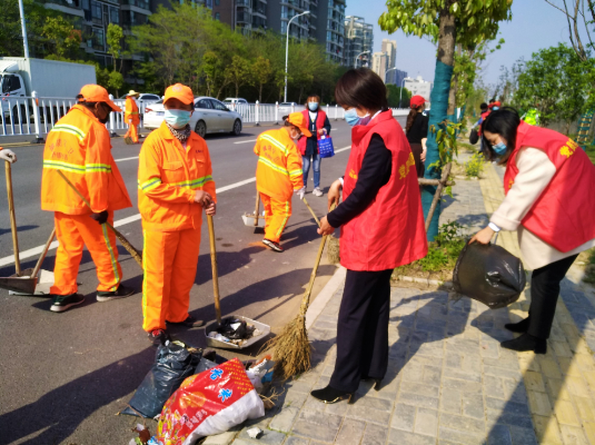 愿者成了一道亮麗的風景線,也給社區帶來了優美整潔的環境,用實際行動喚起了人們的愛環境意識。全體黨員志愿者身著志愿者隊服,大家手拿掃帚、簸箕等工具,發揚不怕苦、不怕臟的精神,分工合作,對沿路廢棄物品、塑料垃圾等進行了全面認真的清理打掃,不放過任何細節,雜草、垃圾袋、廢紙屑、小煙頭都被清掃干凈。經過大家的努力勞動,道路面貌煥然一新。
