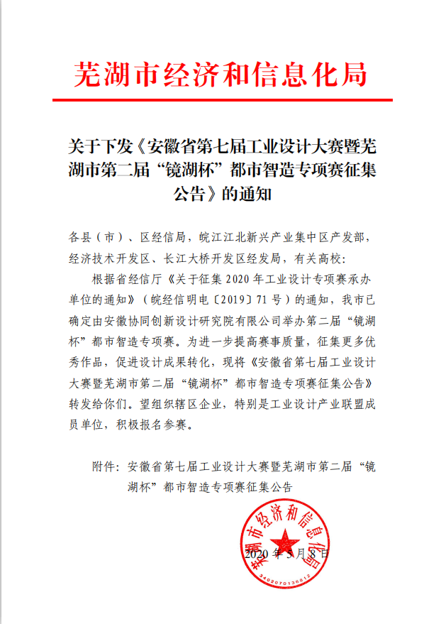 安徽省第七屆工業設計大賽暨蕪湖市第二屆“鏡湖杯”都市智造專項賽征集公告