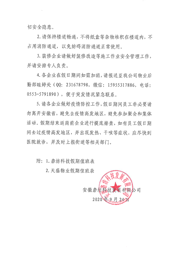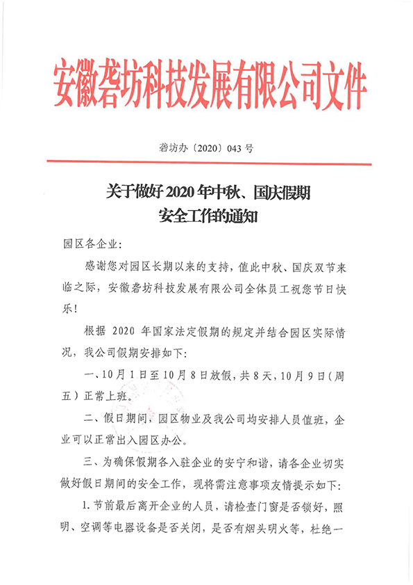 關于做好2020 年中秋、國慶假期安全工作的通知