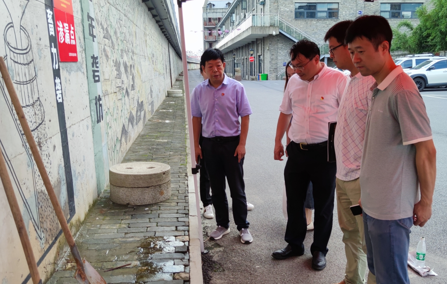 最后,調研組一行來到園區防洪墻向防汛值守人員表示慰問。
